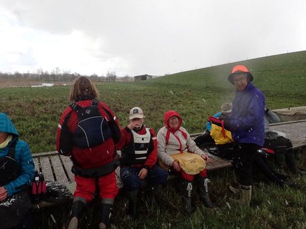 Lidt afhængigt af vejret ror vi en time til halvanden, og går derefter i land og holder (spise/kaffe)pause en god halv time.